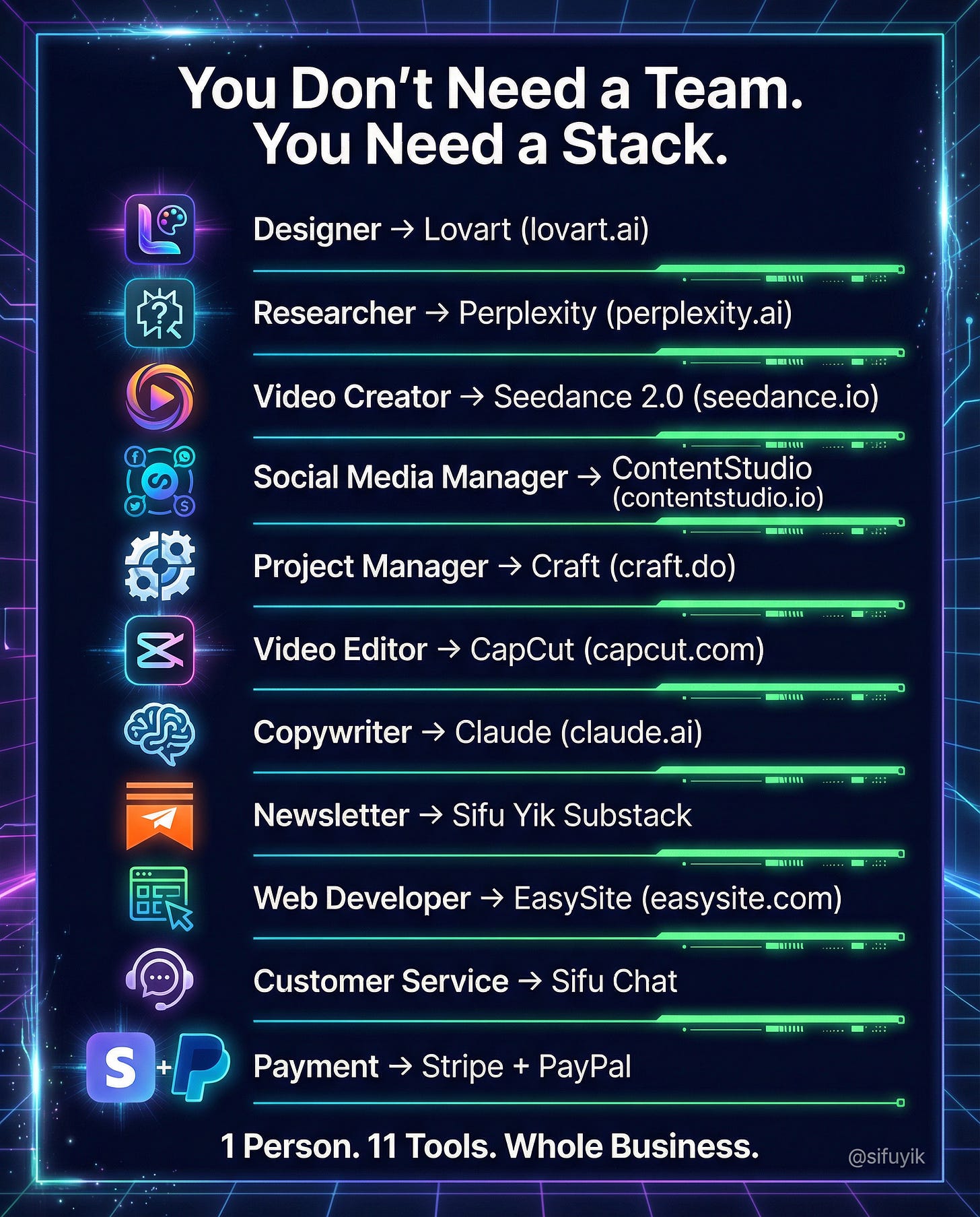⚡ You just need the right tools to run the whole business solo.